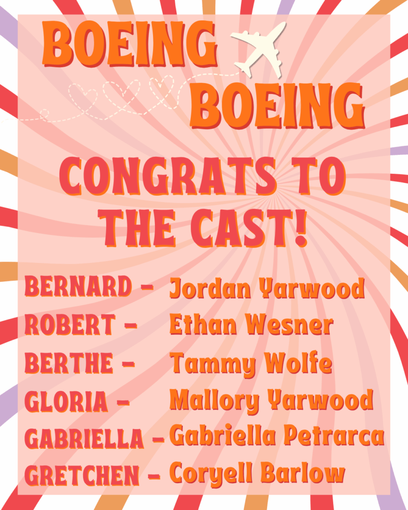 See this hilarious cast of the comedy “Boeing Boeing” in the Historic Mishler Theatre in downtown Altoona, PA, November 13-16, 2025.