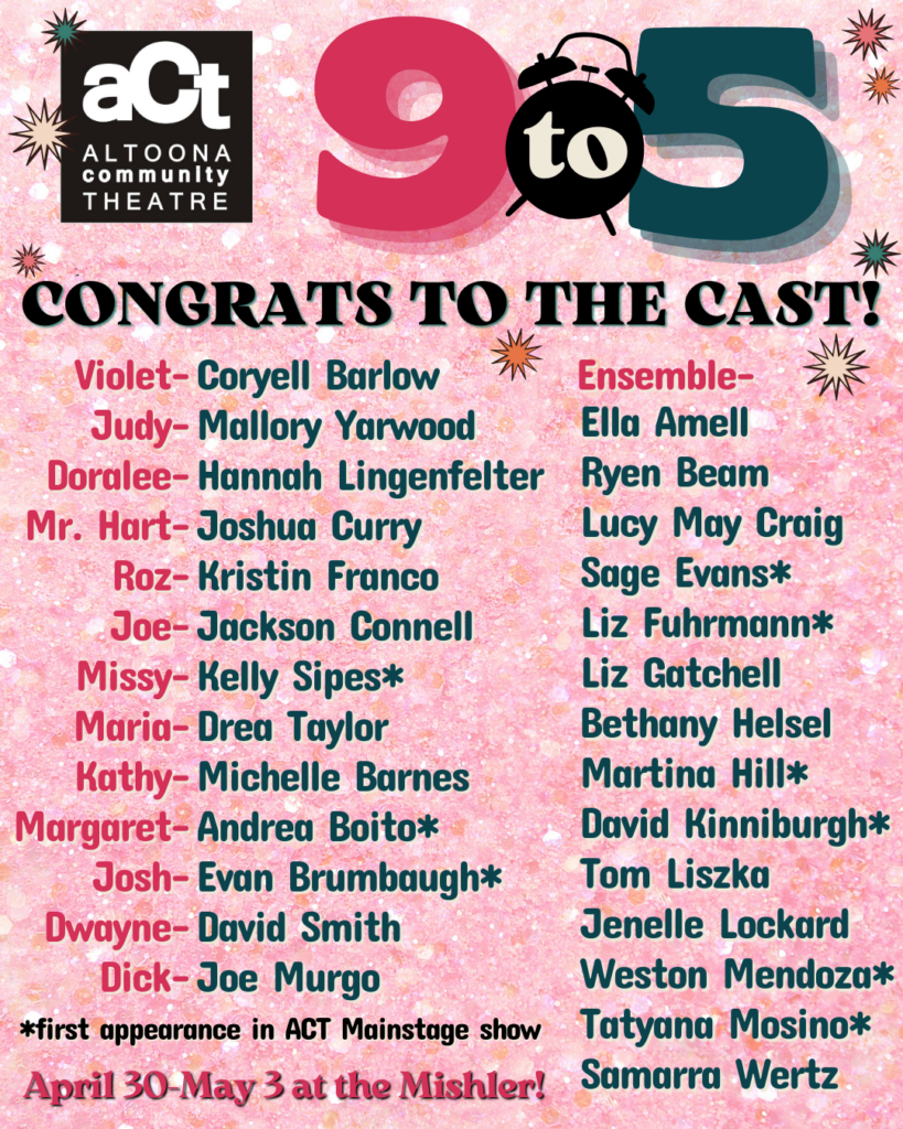 Altoona Community Theatre is pleased to announce the cast for its May production of “9 to 5”