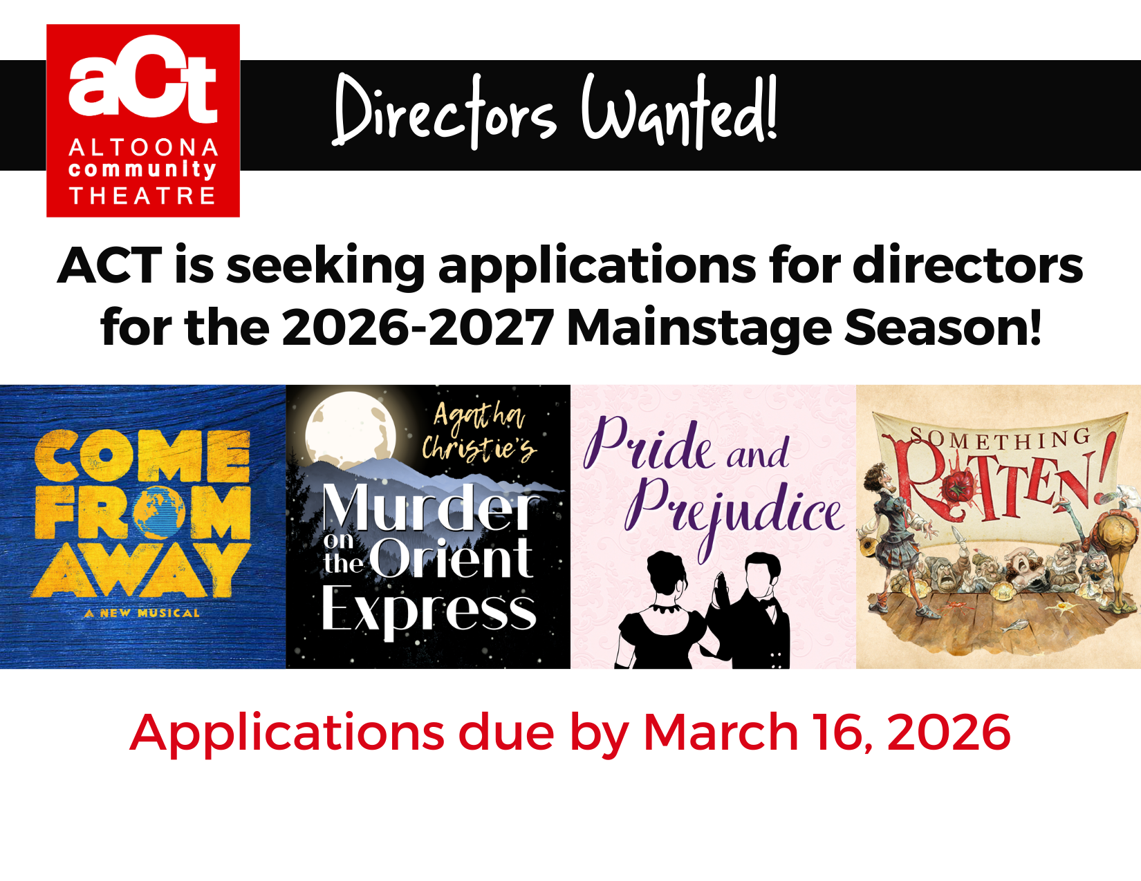 ACT Seeks Directors for 2026-2027 Season