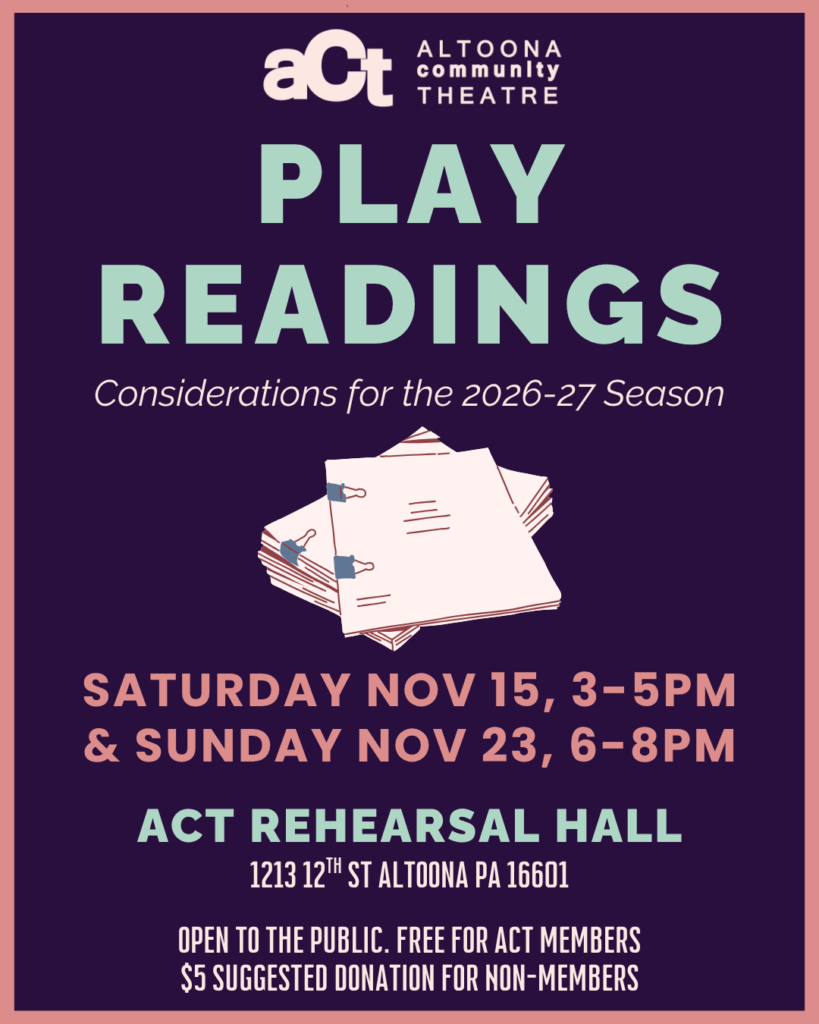 - ACT Rehearsal Hall (1213 12th St. Altoona, PA)